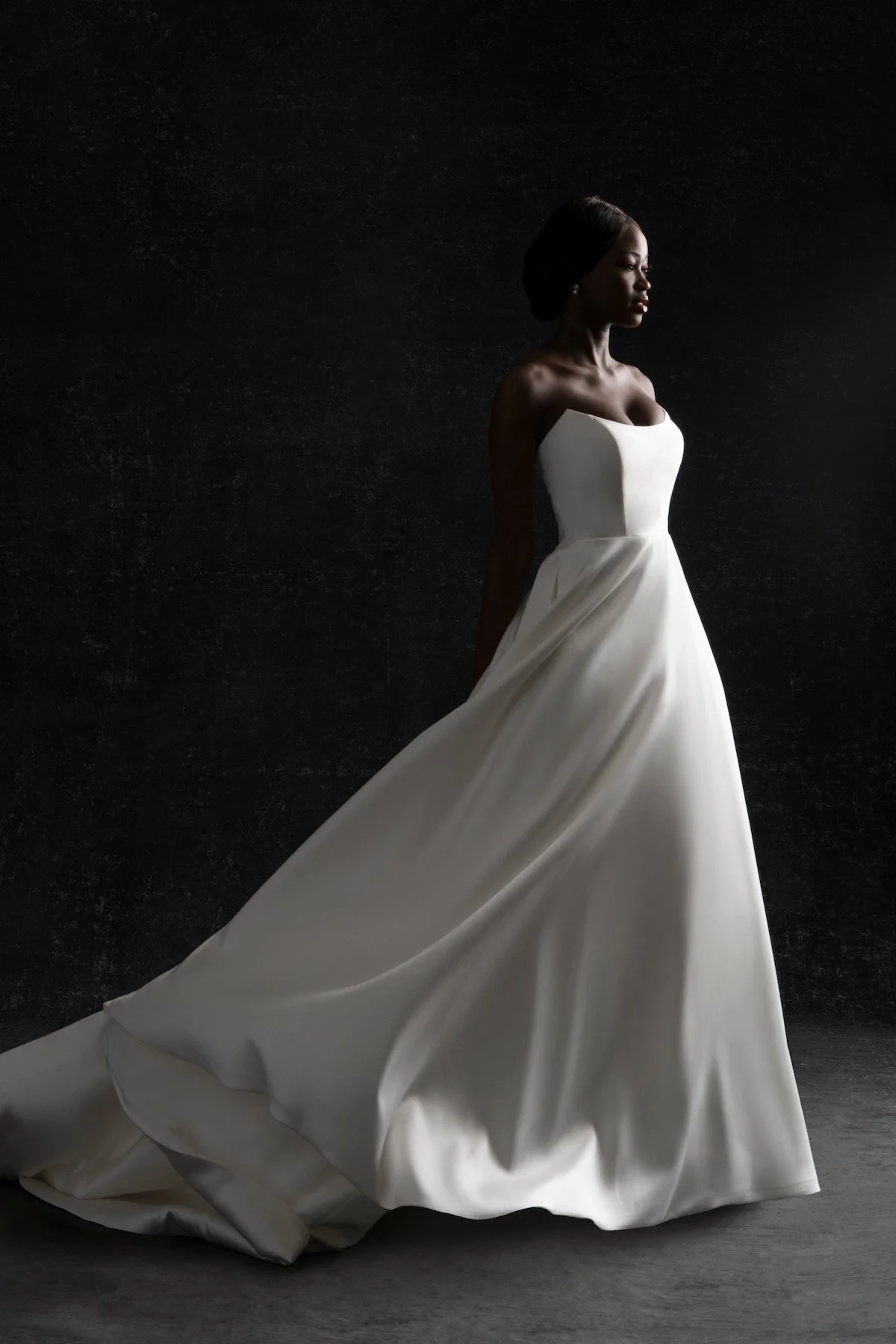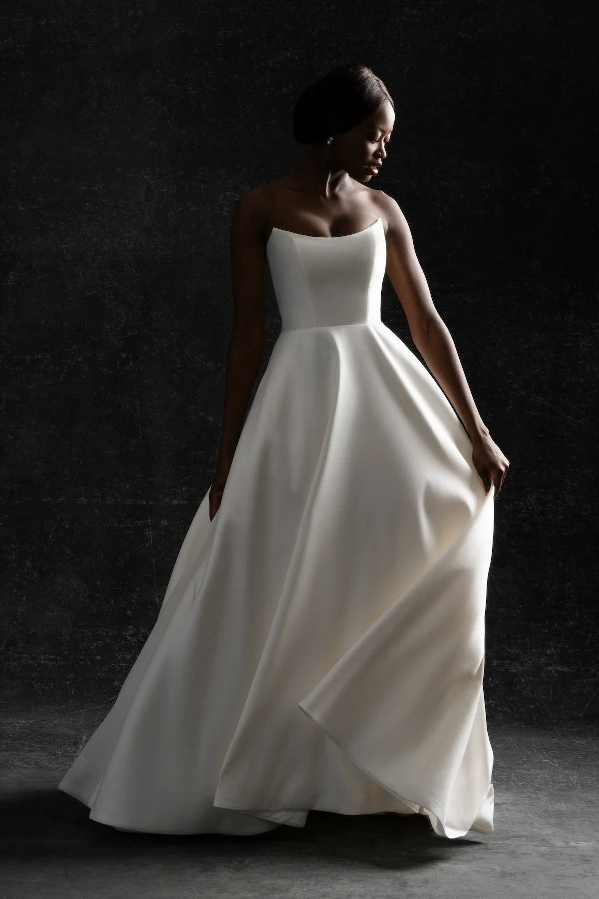 This utterly timeless ballgown offers the best of both worlds: the elegant, full-coverage floral masterpiece — and the minimalist Mikado ballgown underneath.